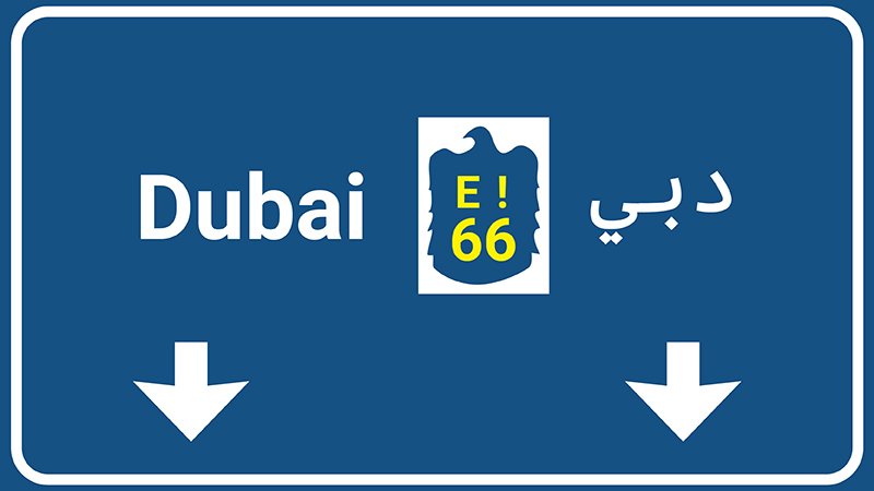 Blue: Blue signs direct you to highways connecting cities across the UAE, such as Abu Dhabi, Sharjah, or Fujairah.